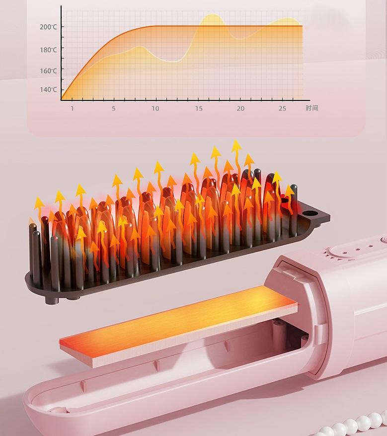 This cordless straightener brush is designed with safety in mind to prevent accidents. We added a protective device on the heating plate's surface to avoid skin burns during use, Fully ensure the safety of your use.